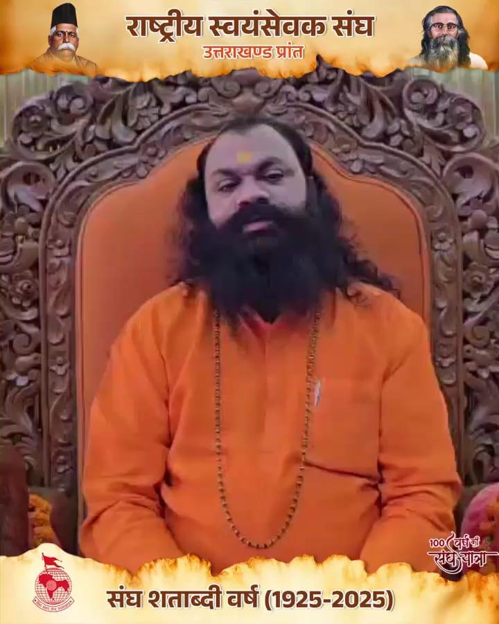 राष्ट्रीय स्वयंसेवक संघ शताब्दी वर्ष पर महामंडलेश्वर स्वामी रुपेन्द्र प्रकाश जी महाराज, पीठाधीश्वर प्राचीन अवधूत मंडल आश्रम हरिद्वार !