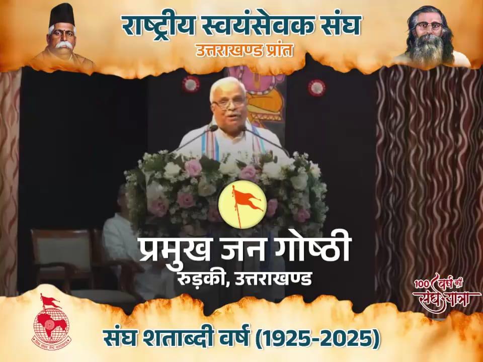 राष्ट्रीय स्वयंसेवक संघ के शताब्दी वर्ष के उपलक्ष पर आज आई.आई.टी. रुड़की में प्रमुख जन गोष्ठी के आयोजन में मुख्य वक्ता राष्ट्रीय स्वयंसेवक संघ के पूर्व सरकार्यवाह एवं वर्तमान में अखिल भारतीय कार्यकारिणी सदस्य श्री सुरेश भैय्याजी जोशी जी का उद्बोधन !