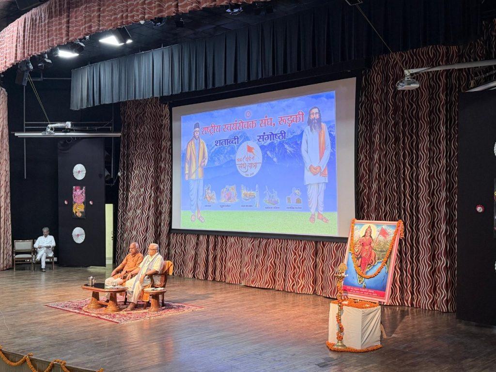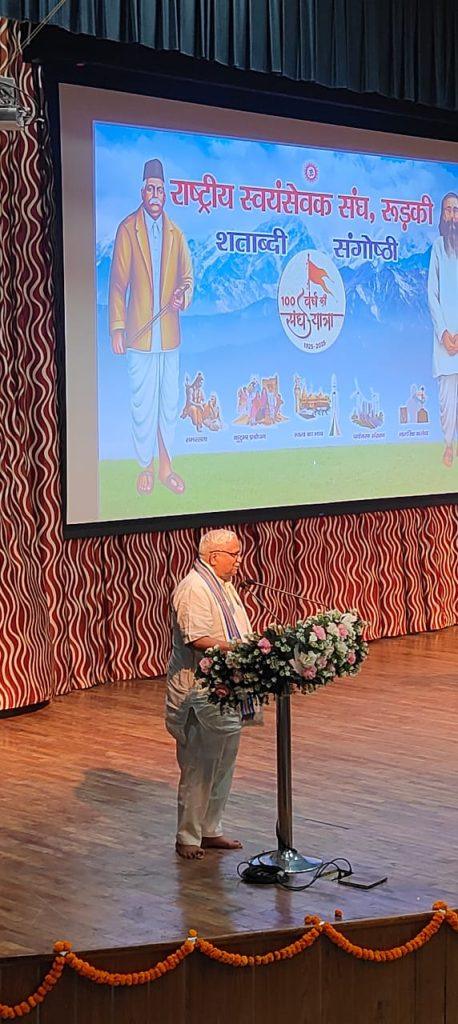 राष्ट्रीय स्वयंसेवक संघ के शताब्दी वर्ष के उपलक्ष में आज प्रमुख जन गोष्टी का आयोजन आईआईटी रुड़की में किया गया, जिसमें मुख्य वक्ता के रूप में राष्ट्रीय स्वयंसेवक संघ के पूर्व सर कार्यवाह एवं वर्तमान में अखिल भारतीय कार्यकारिणी सदस्य श्रीमान सुरेश भैय्याजी जोशी जी ने कहा कि “विश्व ने भारत को जिम्मेदारी दी है कि वह विश्व का शुद्धिकरण करें, भारत का सदा से विश्व को श्रेष्ठ देने का मन रहा है और इसको भारत सदेव देता रहेगा।